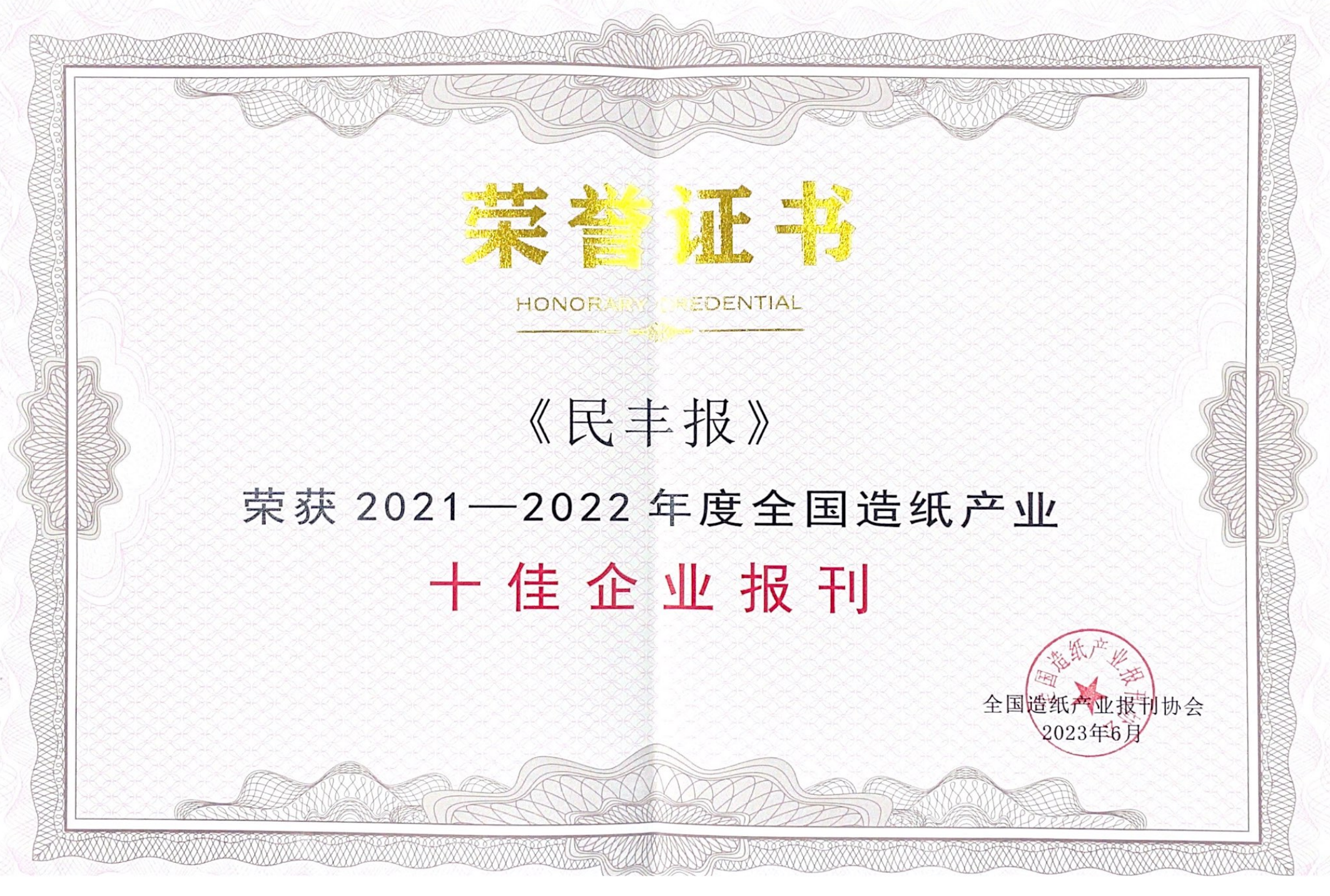 会上,《Z6尊龙报》从近30家参评企业报刊中脱颖而出,荣获2021-2022年度全国造纸产业“十佳企业报刊”殊荣。公司4名企业文化、宣传工作者荣获2022年度全国造纸产业优秀文化工作者、优秀新媒体工作者、优秀企业新闻工作者、优秀企业报刊通讯员等奖项。